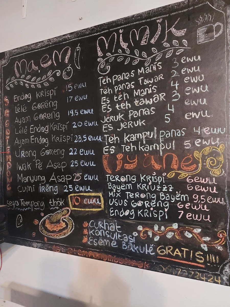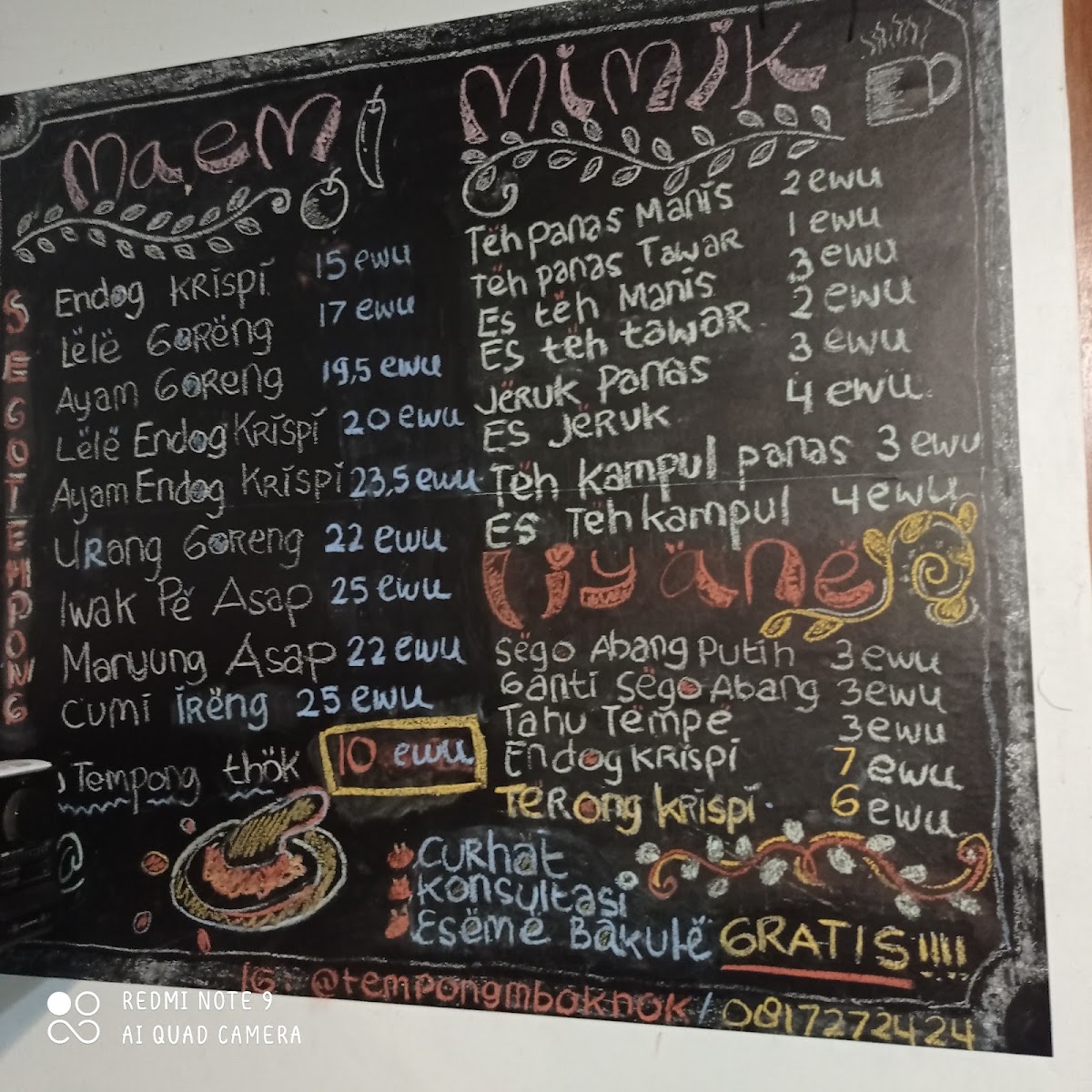 Welcome to Sego Tempong Mbok Nok, a culinary gem located in the heart of Sleman, Yogyakarta. Known for its delicious nasi tempong, this restaurant brings the flavors of East Java, specifically Banyuwangi, to your plate. The menu boasts an impressive variety of side dishes, including tantalizing options like ayam, lele, and cumi, all complemented by their signature spicy sambal tempong. Customers rave about the generous portions and affordable prices, making it a favorite among locals and visitors alike. Reviewers highlight the bold flavors, particularly the sambal with its zesty kick, often enhanced with hints of jeruk. The warm and friendly atmosphere, coupled with the owner’s welcoming nature, adds to its charm. Whether you’re a spice lover or looking to explore authentic Indonesian cuisine, Sego Tempong Mbok Nok promises a fulfilling and delightful experience.